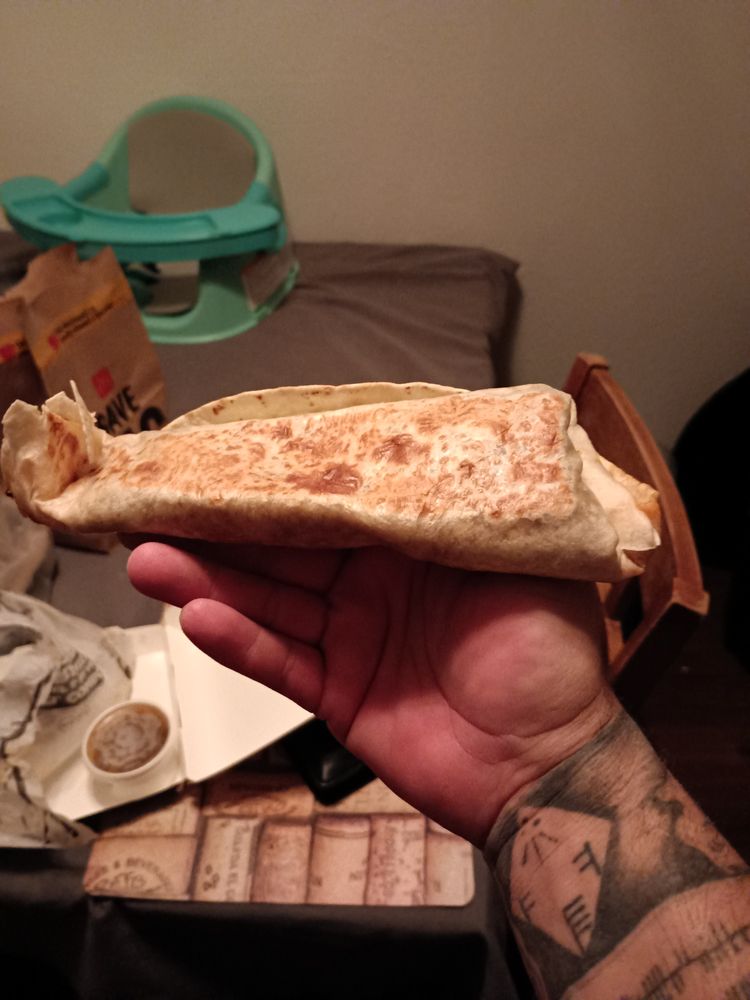 Seasoned beef, fresh housegrated cheddar cheese, and zesty red sauce, wrapped in a warm flour tortilla.